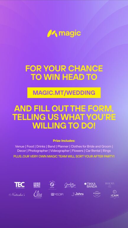 Couples who want to take part are being invited to head over to magic.mt/wedding and fill out an application form — but there’s a twist. Participants must explain what they’re willing to do for the chance to win, hinting that the competition could involve fun challenges or unique experiences along the way.